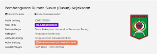 Tayangan di LPSE Kota Bima kegiatan Pembangunan Rumah Susun (Rusun) atau Mess Kejaksaan Negeri Raba Bima sebesar Rp3,3 miliar. METROMINI/Do...