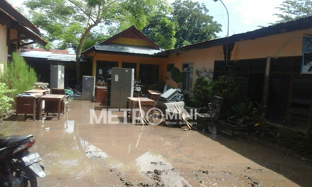 Dikatakannya, semenjak datangnya banjir bandang akhir Desember 2016 lalu, kantor ini sama sekali tidak pernah di sentuh untuk dibersihkan. Itu bisa dilihat dari ruangannya yang kotor dan penuh lumpur dan juga meja kursi yang sudah pada berantakan.